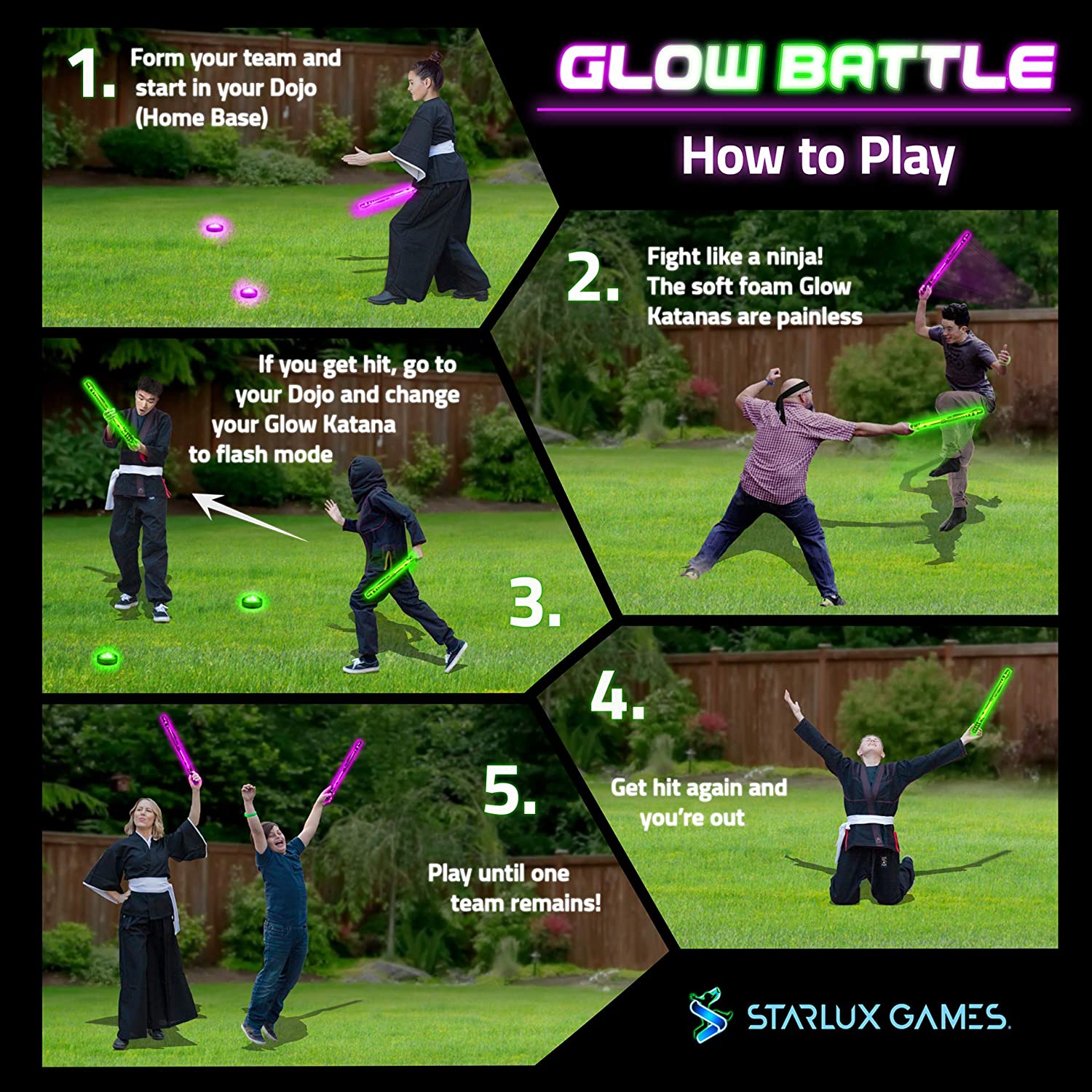 Starlux Games Glow Battle: A Ninja Game with Glow-in-The-Dark Foam Swords